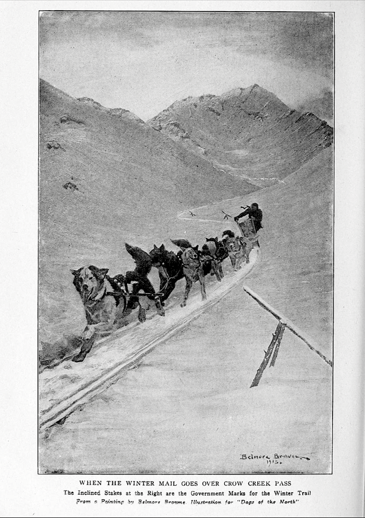 When the Winter Mail Goes Over Crow Creek Pass, a painting by Belmore Browne